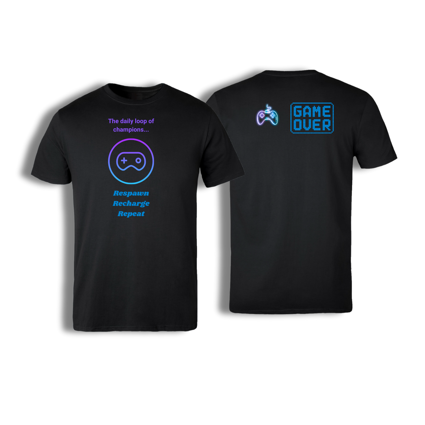 For the gamers who live the grind, the Daily Loop Tee says it all: Respawn. Recharge. Repeat. Designed with a glowing neon-style print on the front and a bold Game Over graphic on the back, this shirt captures the cycle every champion knows too well. Whether you’re logging on for a marathon session or just flexing your love for gaming, this piece keeps your look sharp and your vibe unmistakably nerdy.
