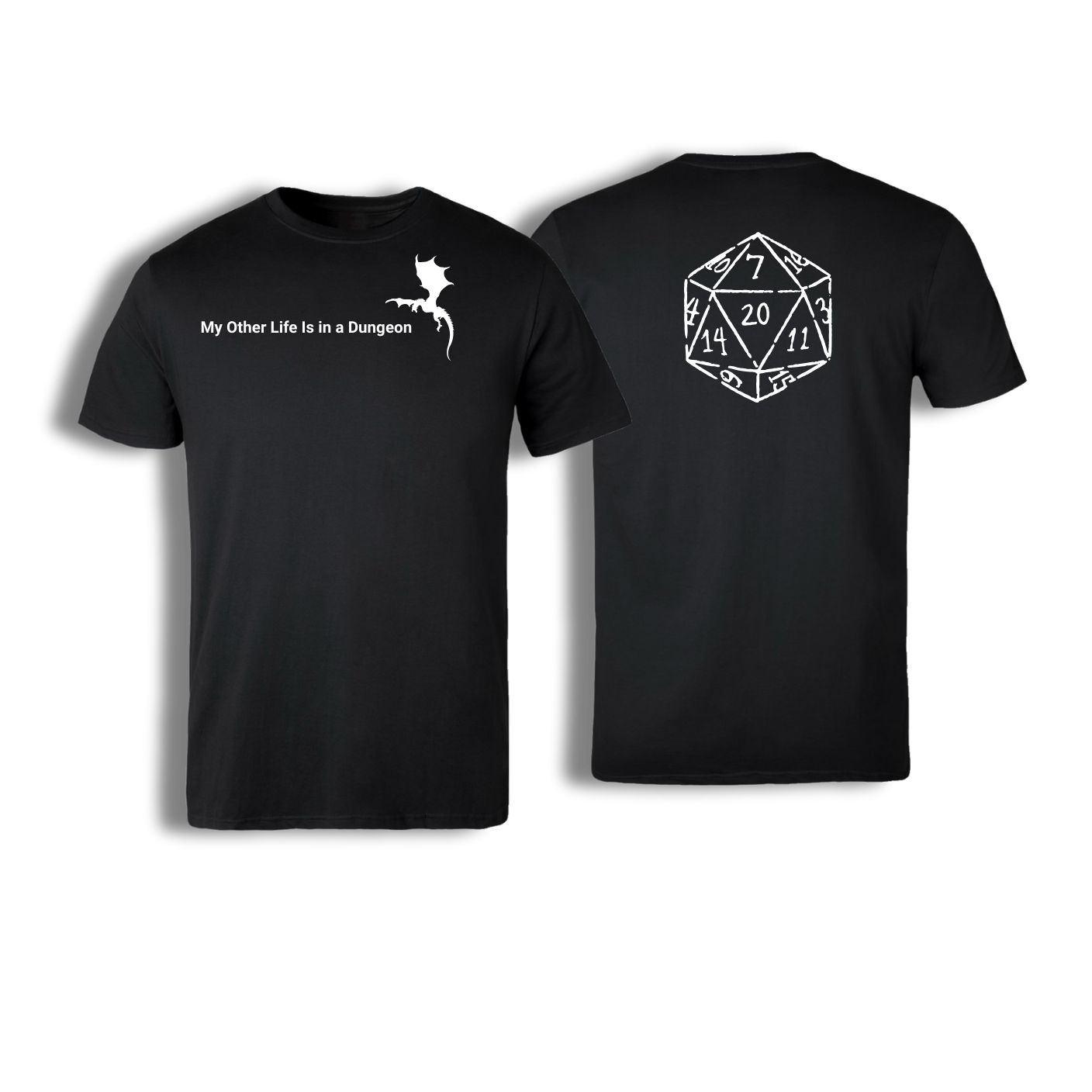 For every adventurer who knows the thrill of the roll, the DND Tee brings your dungeon life into the real world. The front features a sleek dragon silhouette with the phrase “My Other Life Is in a Dungeon” while the back rocks a bold D20 dice design. The ultimate nod to tabletop legends.
