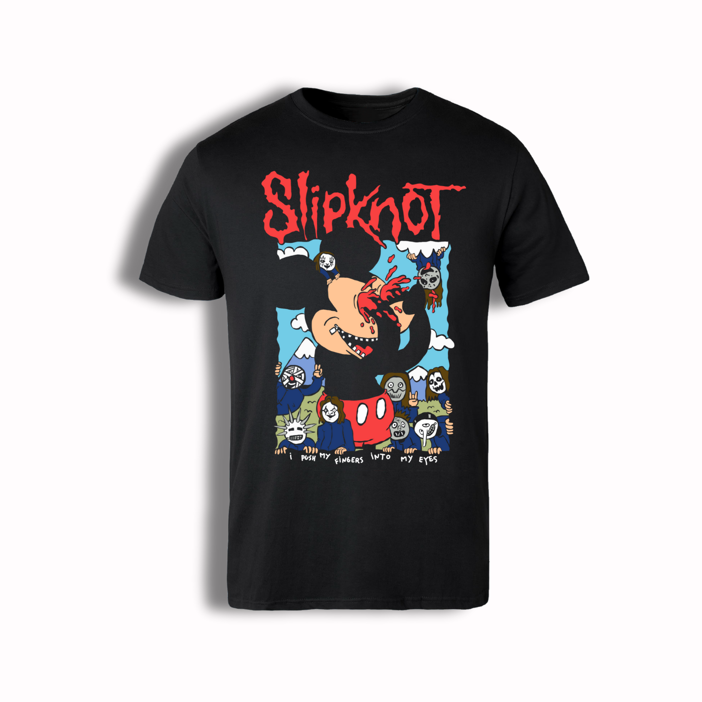 Turn the volume up on your wardrobe with the Slipknot Tee. Featuring a bold graphic print inspired by the band’s raw energy and chaotic spirit, this shirt is built for fans who aren’t afraid to stand out. The colorful cartoon-style design paired with the iconic Slipknot logo makes it an instant statement piece whether you’re at a gig, on the street, or just repping your favorite band.